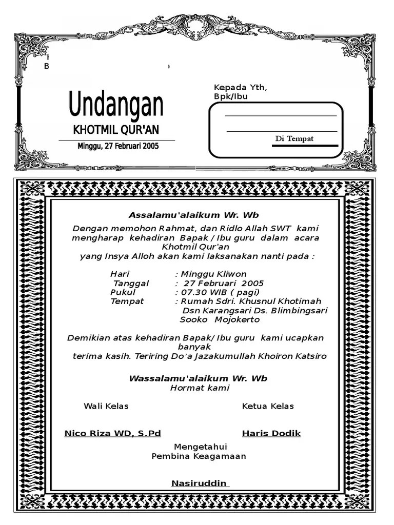 Surat undangan khotmil qur an. Check spelling or type a new query. We did not find results for: Maybe you would like to learn more about one of these?